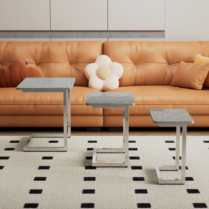 طاولة جانبية بسطح حجري وإطار ستانلس ستيل بتصميم عصري