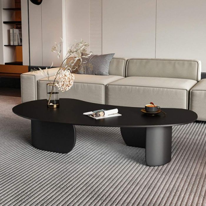 طاولة عصرية مصنوعة من حجر ملبد يتميز بصلابة الصخر ومظهر رخامي أنيق، وقاعدة معدنية ثابتة، تمنحك حضورًا راقيًا في الصالة، مثالية للقهوة والديكور، سهلة التنظيف، وتناسب المساحات العصرية