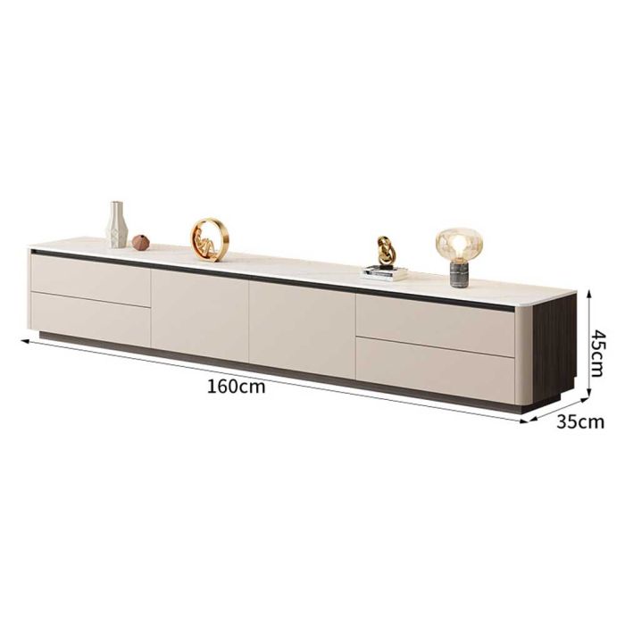 طاولة تلفزيون من الخشب المضغوط عصرية مع 4 أدراج وأبواب مزدوجة