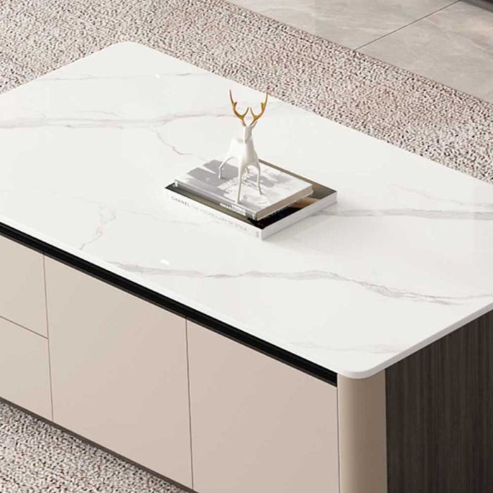 - الخامة: خشب مضغوط مع سطح رخامي