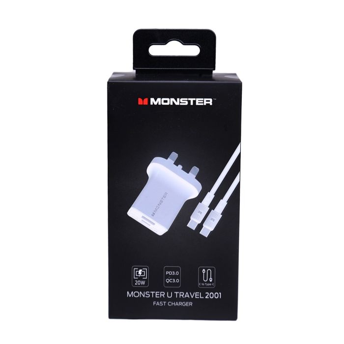 - شاحن حائط 20 واط مع كيبل Type C إلى Type C من Monster