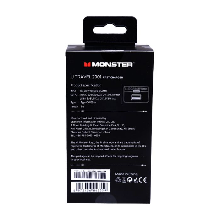 عزز سرعة الشحن لديك باستخدام الشاحن السريع Monster 20W! يتميز هذا الشاحن القوي بكابل Type-C إلى Type-C، ويوفر شحنا سريعا وفعالًا لأحدث الهواتف الذكية والأجهزة اللوحية والأجهزة الأخرى من النوع C. صغير الحجم ومتين، وهو الحل الأمثل للطاقة السريعة أثناء التنقل