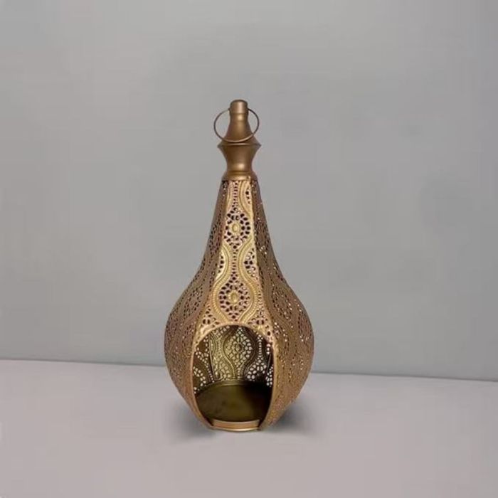 فانوس مغربي معدني مزخرف مصنوع من معدن متين، بتصميم شرقي مفرغ يعكس إضاءة دافئة وجذابة، مناسب للديكور المنزلي والأجواء الهادئة، يضيف لمسة فنية أنيقة للمكان ويحافظ على جودته مع الاستخدام