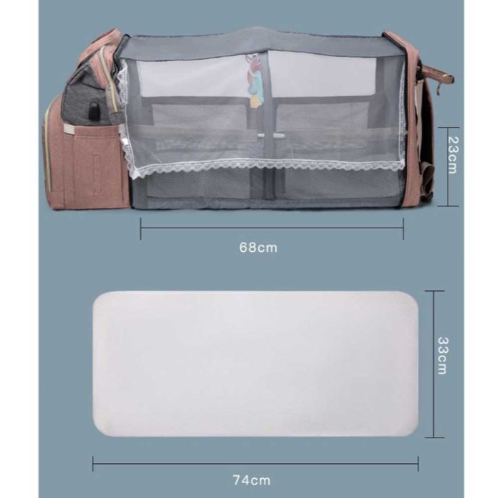 - حقيبة ظهر للأم بسرير قابل للطي للرضع 31×20×41 سم