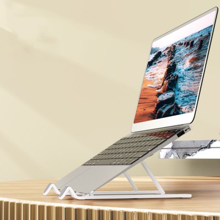 الحامل متوافق مع أجهزة الكمبيوتر المحمولة ويمكن تعديله بثلاث زوايا مختلفة. إنه خيار رائع للأشخاص الذين يعملون على أجهزة الكمبيوتر المحمولة الخاصة بهم لفترات طويلة ويريدون إعدادًا أكثر راحة.