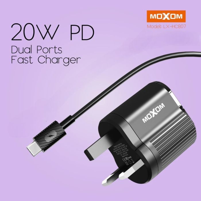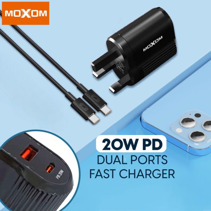 شاحن سريع مزدوج المنافذ PD بقوة 20 واط من Moxom (توصيل سريع)