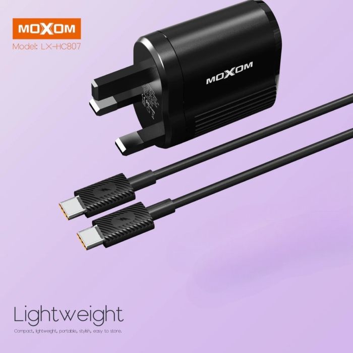 يتيح لك الشاحن السريع Moxom PD مزدوج المنافذ شحن جهازين في وقت واحد. حيث تعمل تقنية الشحن السريع بقوة 20 واط على إحياء أجهزتك بسرعة، بينما يضمن التصميم المدمج سهولة التنقل. كما يبقيك هذا الشاحن على اتصال أينما ذهبت، فهو مزود بمنافذ USB-A و USB-C، كيبل Type C من كلا الطرفين، مما يوفر شحنًا سريعًا وآمنًا وموثوقًا لجميع أجهزتك