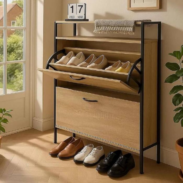 - منظم أحذية خشبي بتصميم عملي وأنيق