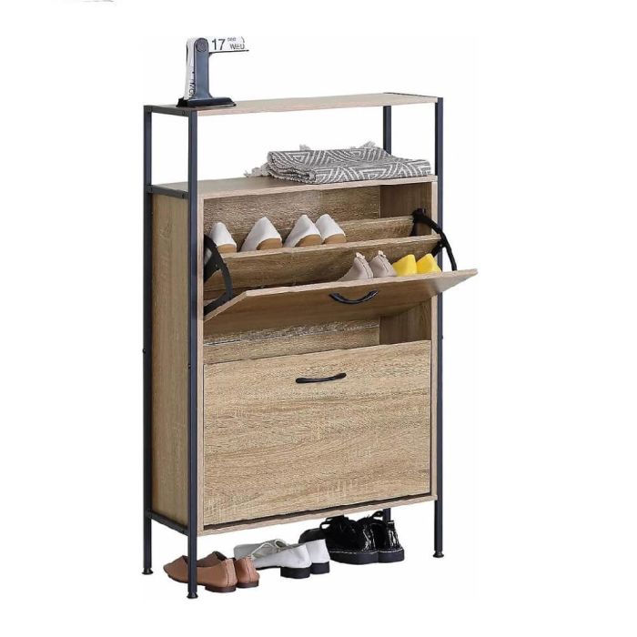 يتميز منظم الأحذية هذا بتصميم عملي مع رف علوي لتخزين الإكسسوارات مثل ملمع الأحذية أو الفرش أو حتى النباتات الصغيرة لإضافة لمسة جمالية، حيث أن كل طبقة تحتوي على رفّين داخليين، مما يمنحك مساحة واسعة لاستيعاب أحذية العائلة بطريقة أنيقة ومرتبة