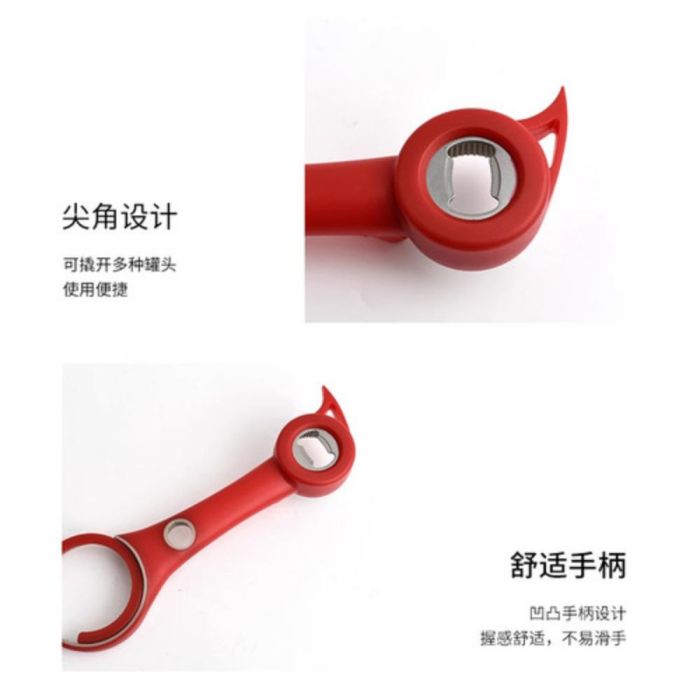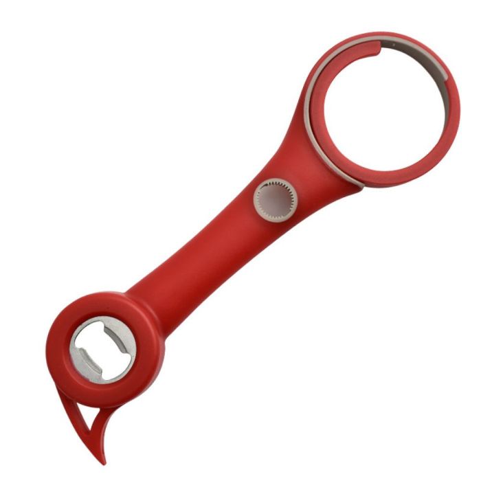 - يتميز بتصميم 4 في 1 يجمع عدة وظائف لفتح الزجاجات وعلب المشروبات في أداة واحدة