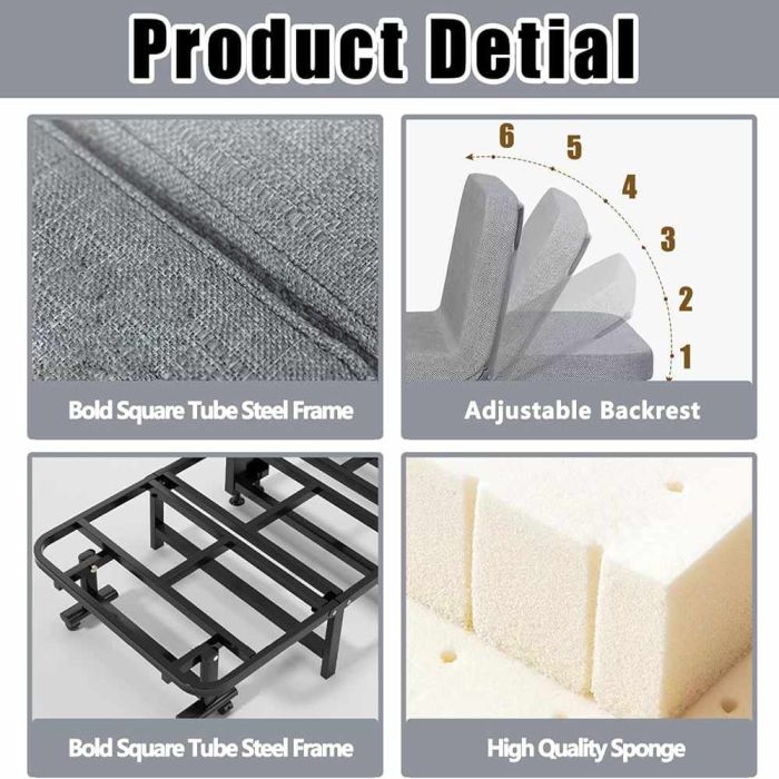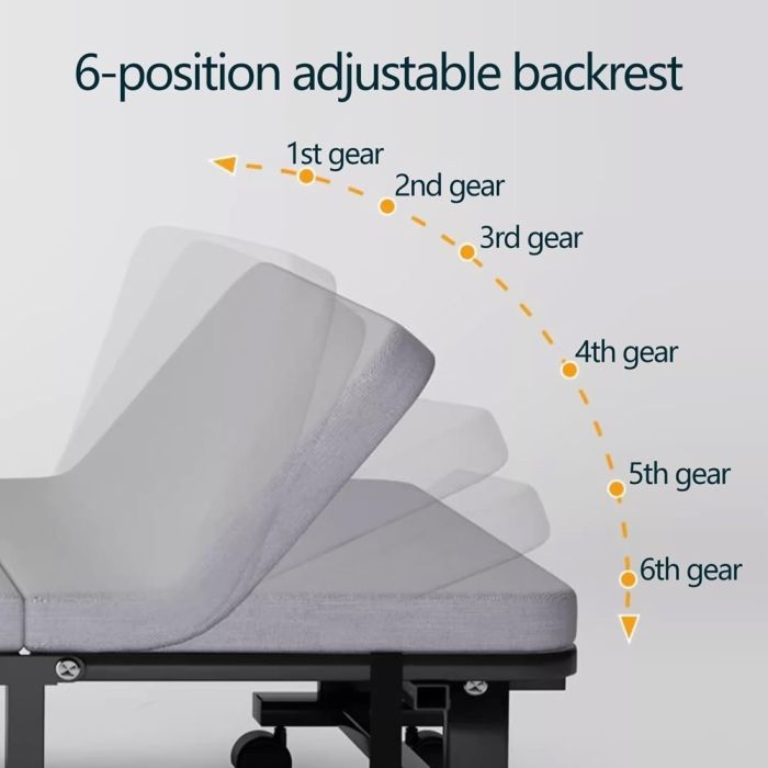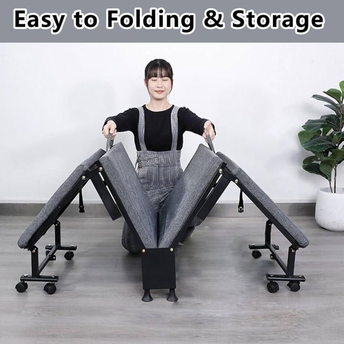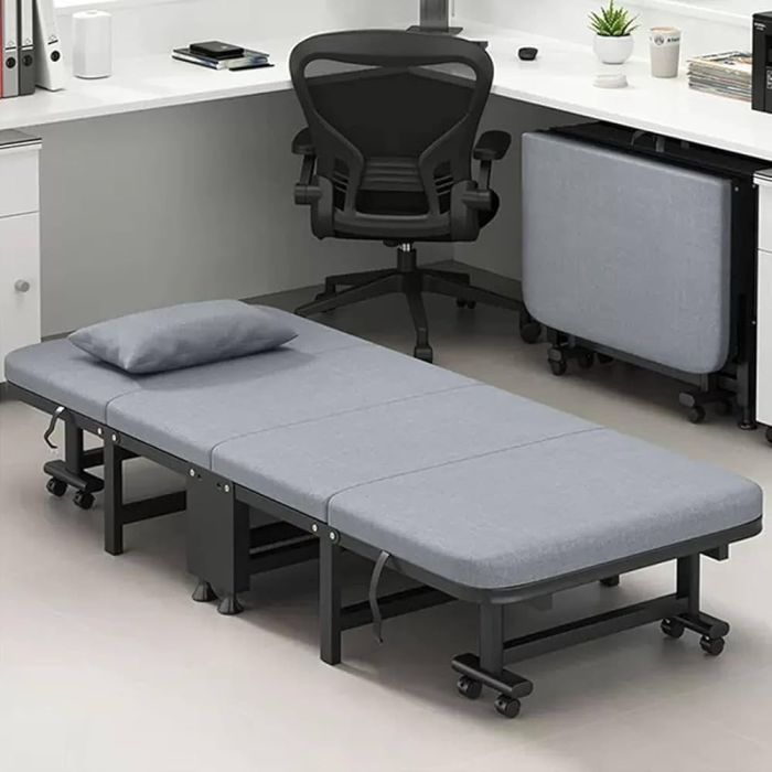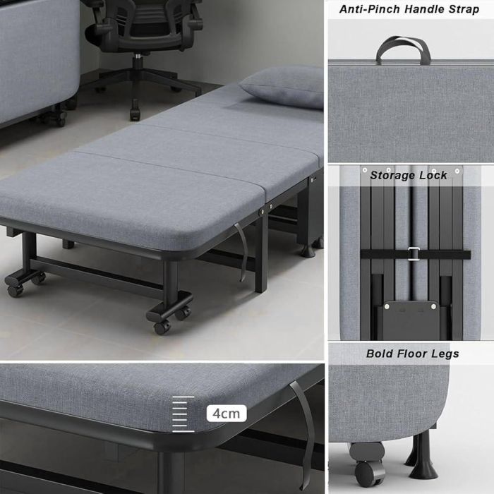 استمتع براحة عملية مع السرير القابل للطي متعدد الاستخدامات، المثالي للضيوف، قيلولة المكتب، أو الشقق الصغيرة. يتميز بتصميم موفر للمساحة قابل للطي إلى 4 أجزاء، ومسند ظهر بـ6 وضعيات مختلفة، مع عجلات 360 درجة لسهولة الحركة والنقل.