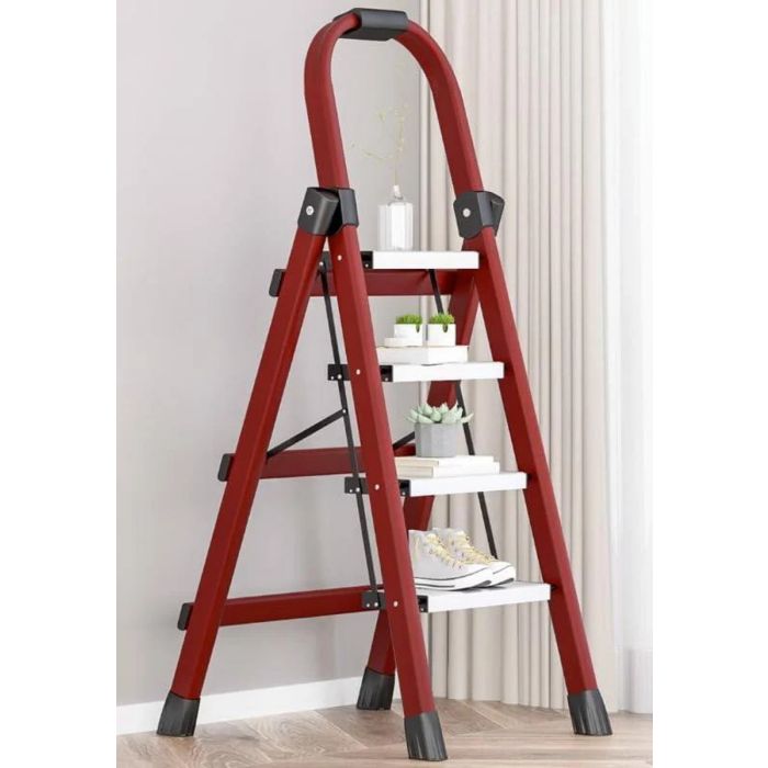 - الإطار المصنوع من الفولاذ الكربوني عالي الجودة مصنوع بقوة وموثوقية. مشبك معدني آمن يتم قفله تلقائيًا في مكانه عند استخدام سلم الدرج. يعزز هيكل الدعامة المتقاطعة الخلفية الدعم الأساسي الذي سيجعلك تشعر بمزيد من الأمان عند تسلق سلم الدرج