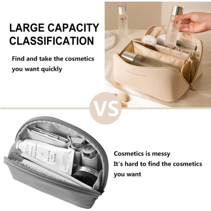 حلك المثالي لتنظيم مستحضراتك بسهولة. حقيبة مستحضرات التجميل تتميز بتصميم ذكي وسعة عالية، مما يتيح لك ترتيب أدوات التجميل والعناية بالبشرة والمجوهرات بكل سهولة. مصنوعة من مادة مقاومة للماء وسهلة التنظيف، مما يحافظ على أغراضك مرتبة وآمنة. الحقيبة ليست فقط للسفر، بل يمكن استخدامها أيضًا كمحفظة يومية أو لتخزين الضروريات الأخرى. مع هذه الحقيبة متعددة الاستخدامات، ستجدين كل شيء في مكانه بشكل منظم وآمن!