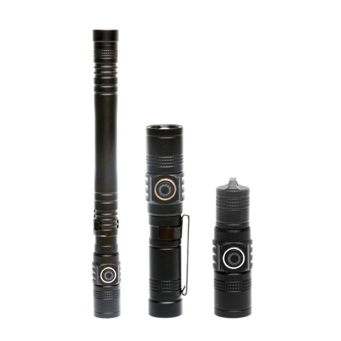 يجمع بين صغر الحجم والقوة التكتيكية في هيكل واحد من الألمنيوم المقاوم للظروف القاسية. ما يميز هذا المصباح هو ذكاء التصميم الذي يتيح لك استخدامه كقلادة خفيفة حول الرقبة أو كمصباح قلم احترافي، مع إمكانية تشغيله بخيارات متعددة من البطاريات لضمان عدم انقطاع الضوء عنك أبداً