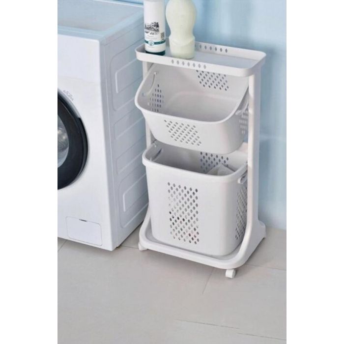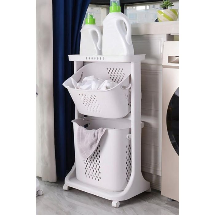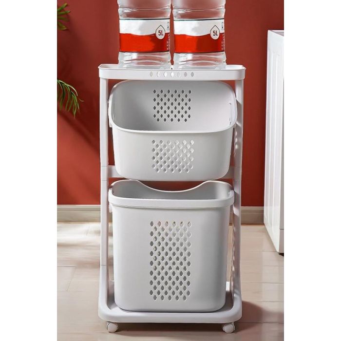 سلة تخزين متعددة الطبقات بسعة كبيرة، مصممة للتنظيم الفعال. يمكنك بسهولة التصنيف والتمييز بين ملابس الكبار والأطفال، والملابس الفاتحة والداكنة، بالإضافة إلى الملابس الداخلية والخارجية . وهذا يسمح بحل تخزين صحي أكثر. في الحمام، يمكنك الاستفادة من الطبقة العليا لتخزين المنظفات والشامبو وجل الاستحمام، مع الحفاظ على الملابس والمناشف والملابس الداخلية النظيفة في الطبقة العليا.