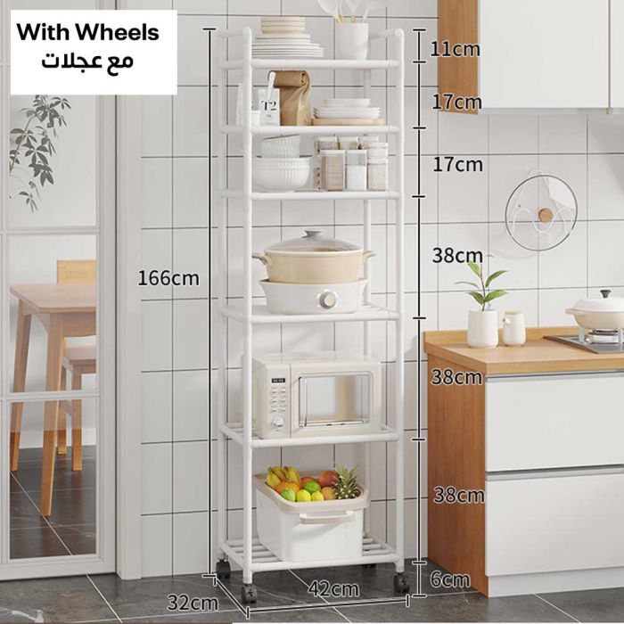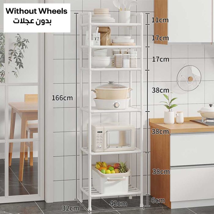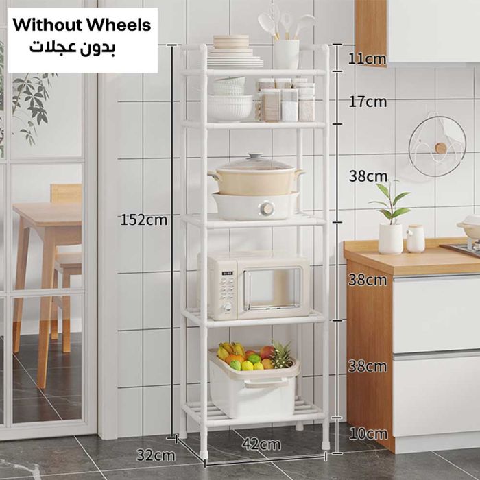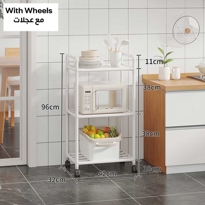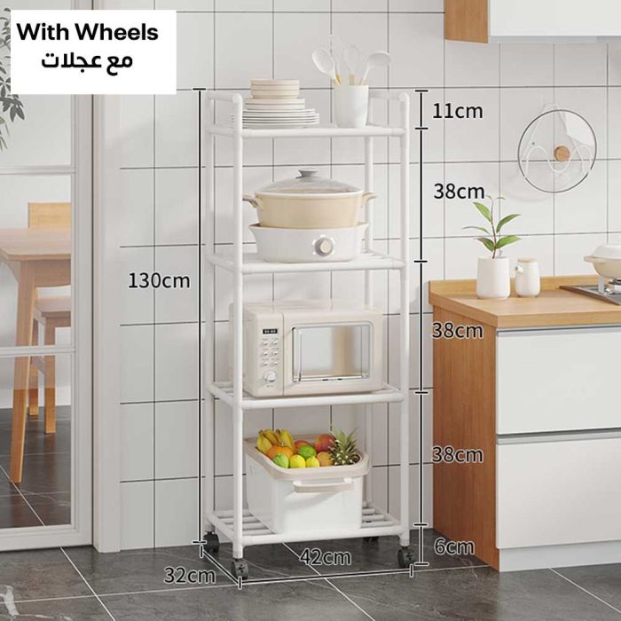 منظم معدني متعدد الطبقات مع أو بدون عجلات مصنوع من هيكل معدني متين، تصميم عملي يوفر ترتيبًا مرنًا للأجهزة والأدوات، يدعم الاستخدام اليومي بسهولة، مناسب للمطبخ والمساحات التي تحتاج تنظيم ذكي ومتغير