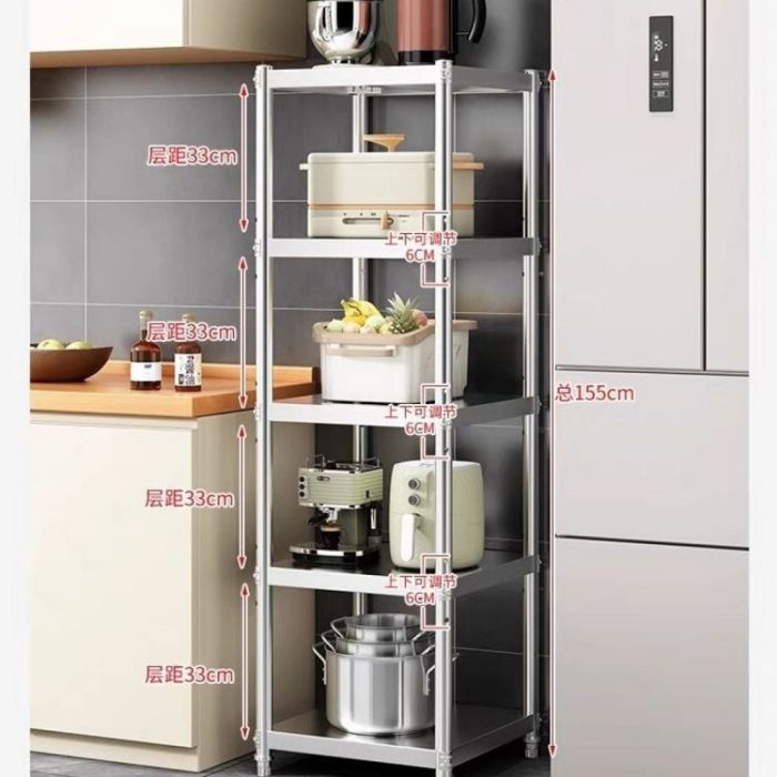 منظم مطبخ متعدد الطبقات مصنوع من ستانلس ستيل قوي يمنحك تنظيمًا أنيقًا واستغلالًا ذكيًا للمساحة، يساعدك على ترتيب الأواني والأجهزة بسهولة، ثابت ومقاوم للرطوبة، مناسب للمطبخ وأماكن أخرى ليجعل يومك أكثر راحة وتنظيمًا