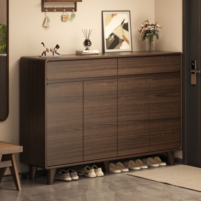 - منظم أحذية خشبي متعدد الطبقات مع أبواب و أدراج
