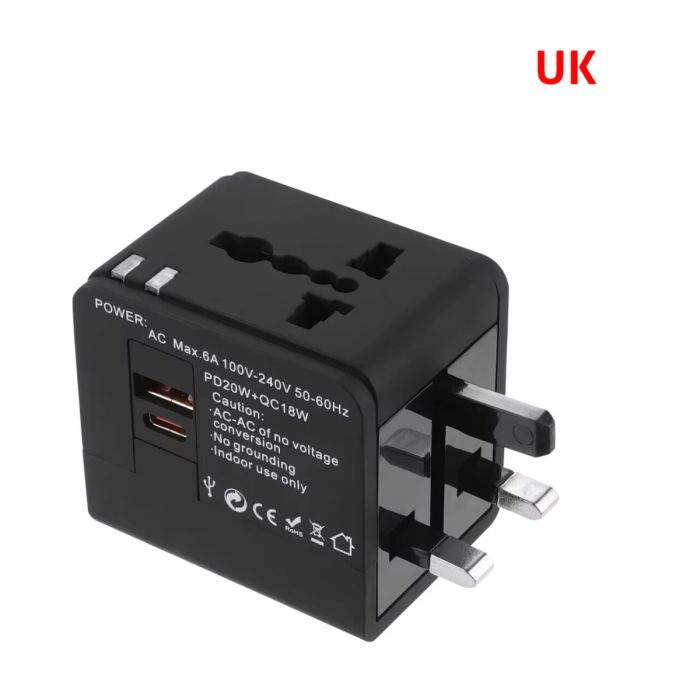 محول سفر عالمي متعدد المنافذ مع شاحن USB من HI-TEX