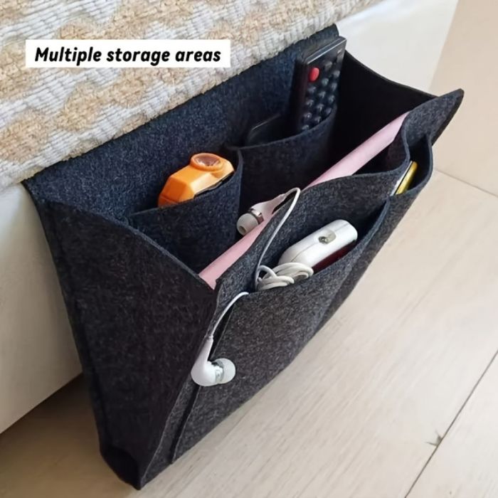 منظم تخزين جانبي متعدد الجيوب مصنوع من لباد متين، يساعد على ترتيب الأغراض اليومية بجوار الفراش، بتصميم أنيق متعدد الجيوب يوفّر وصولًا سهلًا ويحافظ على المساحة مرتبة ومريحة داخل المنزل