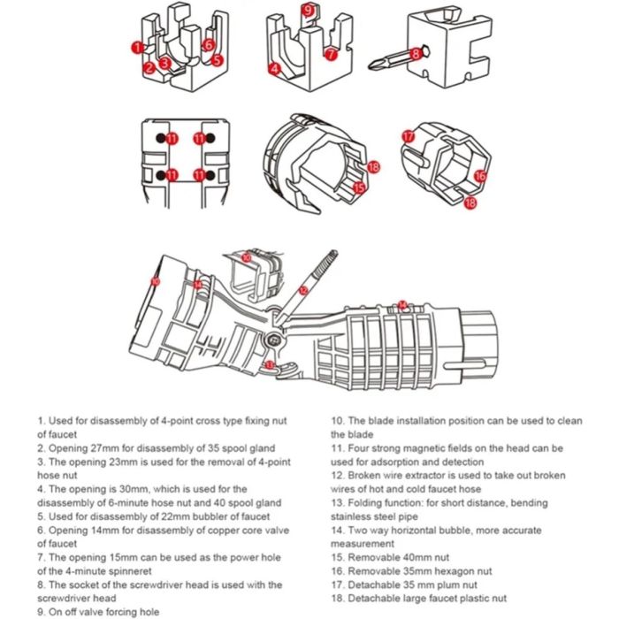 - مفتاح ربط متعدد الاستخدامات 18 في 1 للصنابير والأحواض
