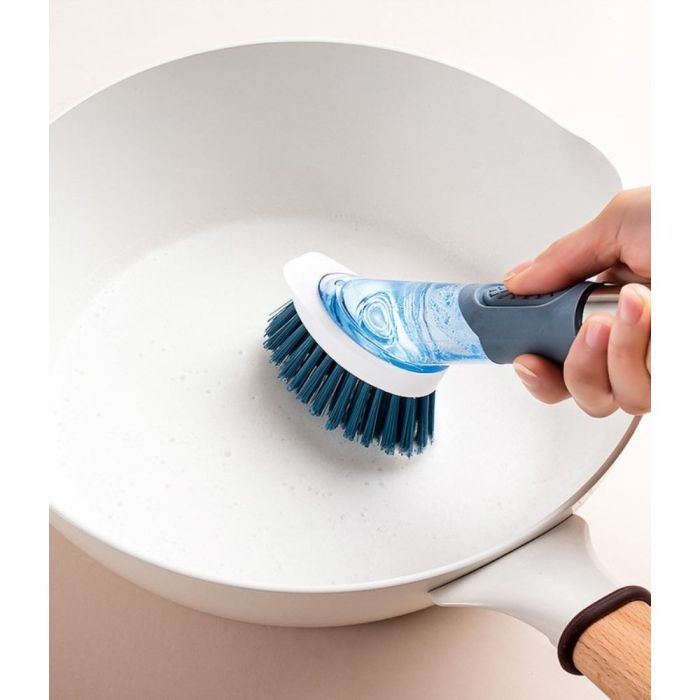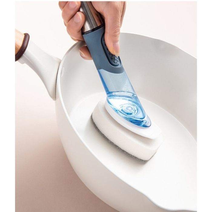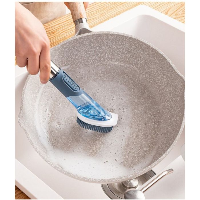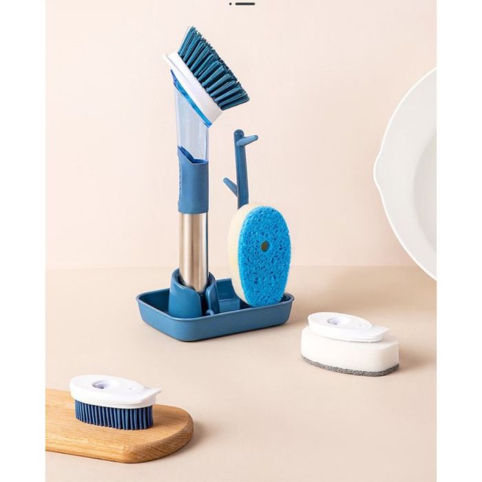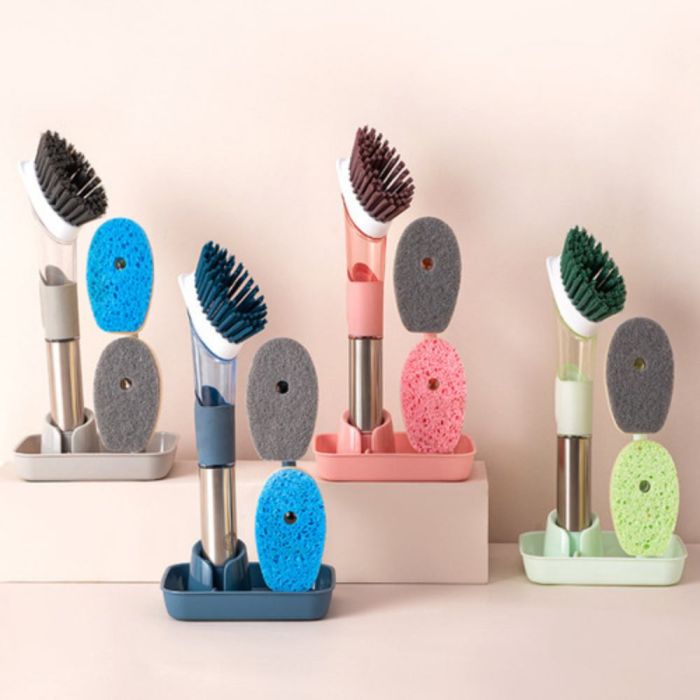 فرشاة تنظيف أواني متعددة الأغراض 4 في 1 مصنوعة من مواد متينة، بتصميم ذكي مع خزان سائل مدمج، تساعد على تنظيف الأواني بسهولة، مناسبة للاستخدام اليومي، توفر تحكمًا مريحًا ونتائج تنظيف واضحة