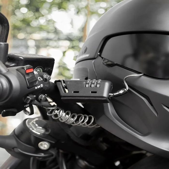 - يمكن تأمين الدراجة والخوذة معاً باستخدام الكيبل