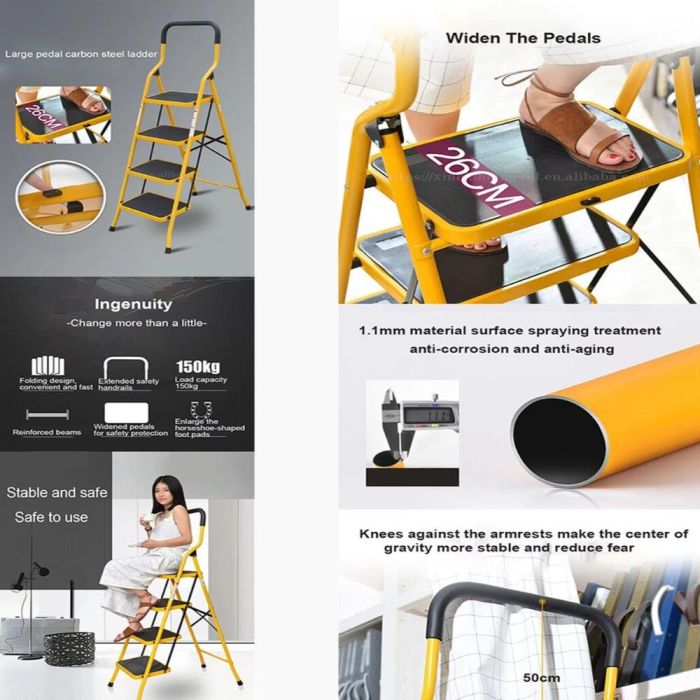 تعامل مع الأماكن التي يصعب الوصول إليها بسهولة وثقة باستخدام سلم متدرج عملي وشديد التحمل. مصنوع من الفولاذ المؤكسد وأجزاء داخلية من الفولاذ الكربوني لمزيد من القوة، يمكن لهذا السلم تحمل ما يصل إلى 150 كجم، كما أن تصميمه موفر للمساحة حيث يمكنكم طيه بشكل مسطح لسهولة التخزين والنقل، مما يجعله الرفيق المثالي لأي منزل أو مكان عمل