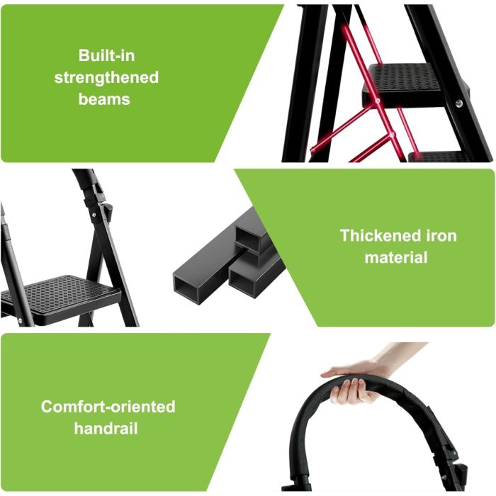 - أبعاد السلم 6 درجات: 185 × 103 × 51 سم