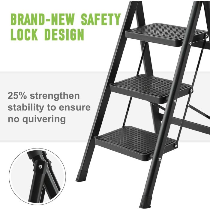 سلم أنيق وغاية في المتانة، اجعل من صعود السلم أمراً يسيراً للوصول إلى الأماكن المرتفعة بسهولة. يتميز بتصميم مبتكر يجمع بين الأمان، الجودة، والراحة، مصنوع من الفولاذ لمزيد من القوة، كما أنه يتحمل وزن حتى 120 كجم، وتصميمه موفر للمساحة حيث يمكنكم طيه بشكل مسطح لسهولة التخزين والنقل، سواء كنت تستخدمه في المنزل أو لأغراض العمل، ستجد في هذا السلم المساعد الأمثل لتنفيذ المهام بكل سهولة وثقة