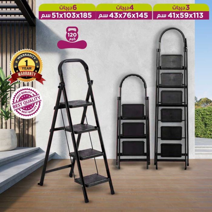 - أبعاد السلم 4 درجات: 145 × 76 × 43 سم