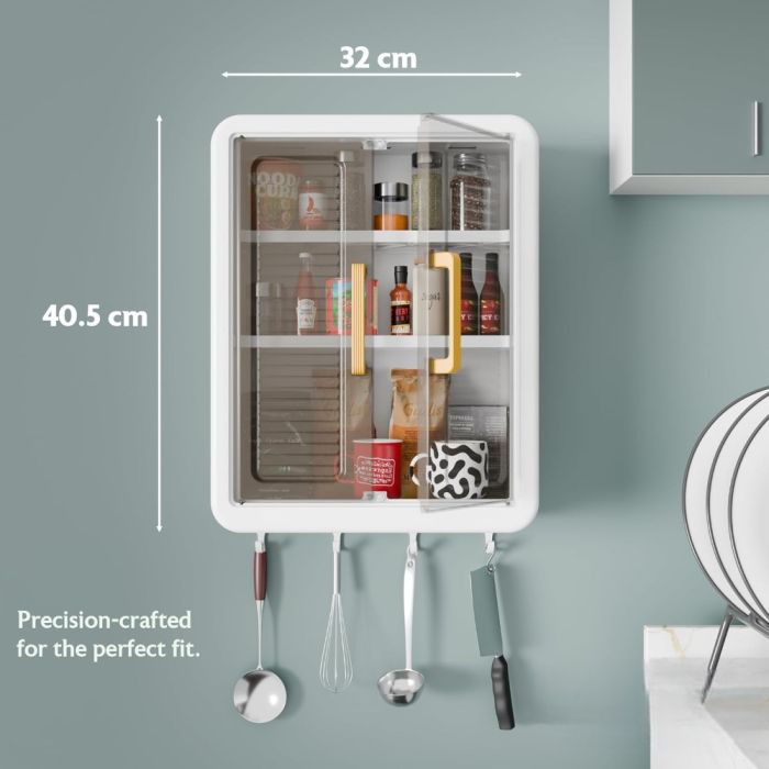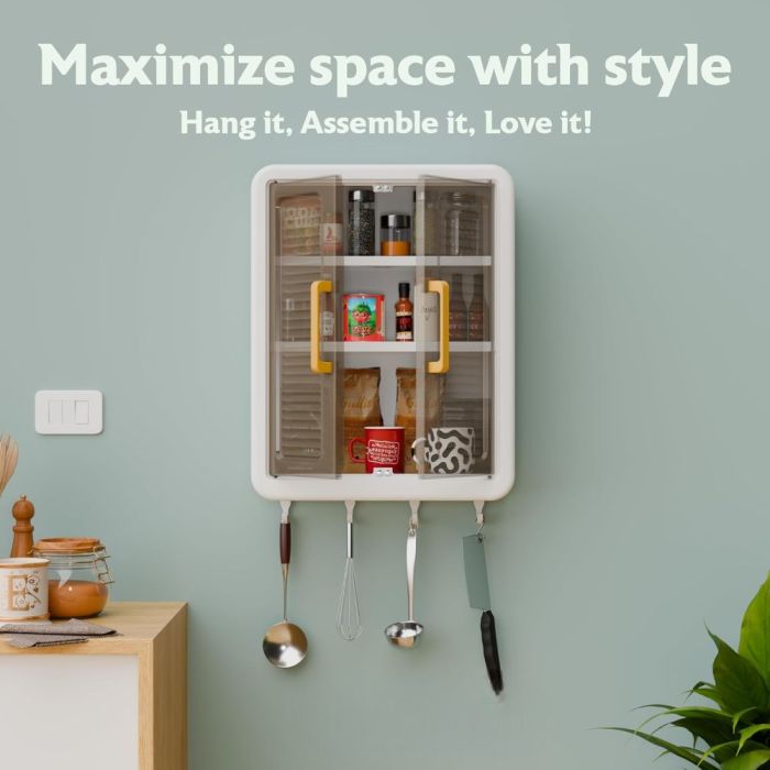 خزانة جدارية بلاستيك متعددة الاستخدامات مصممة لتنظيم المساحات بسهولة، توفر أرفف واسعة مع أبواب شفافة لحماية المحتويات، مزودة بخطافات سفلية لزيادة الاستفادة، تصميم موفر للمساحة ومناسب للمطبخ والحمام والاستخدام اليومي.