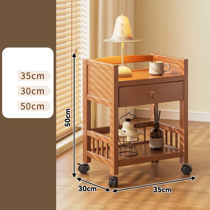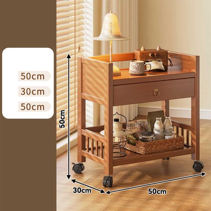 منظم خشبي متعدد الأستخدامات مع عجلات - 2 طبقة مع درج