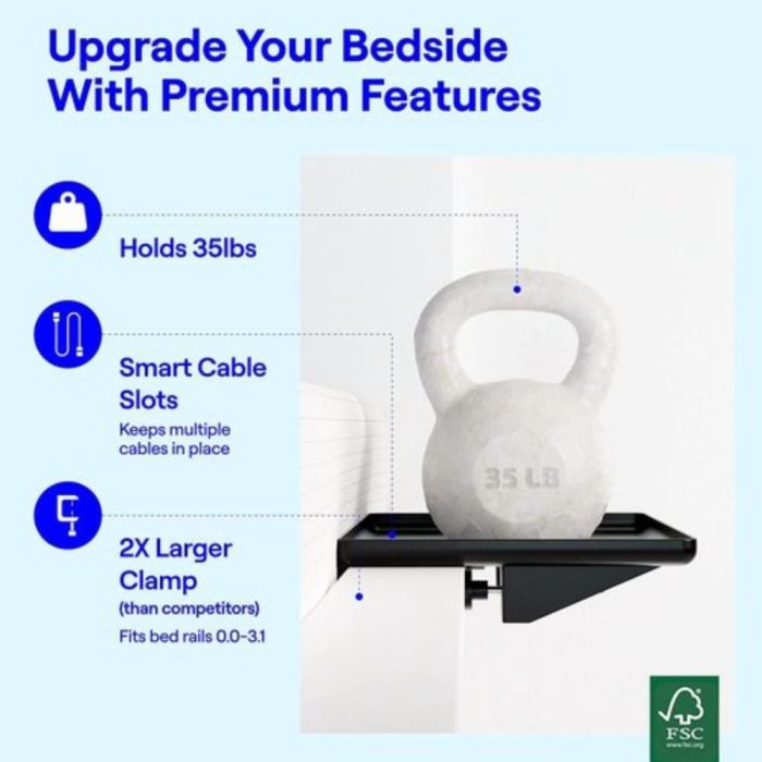 - يتميز بتصميم ذكي بمشبك يتيح تثبيتًا ثابتًا بجانب السرير بدون حفر أو أدوات