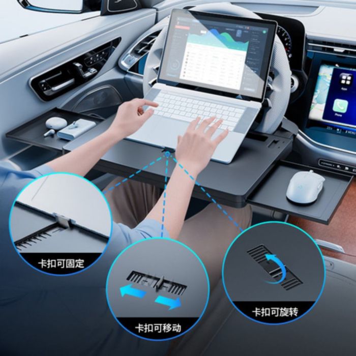 استمتع بطاولة سيارة متعددة الاستخدام لعجلة القيادة، تمنحك مساحة مريحة داخل السيارة، مثالية للعمل الخفيف أو الترفيه أو تناول الطعام، تصميم ذكي يثبت بسهولة ويمنحك حرية استخدام يديك أثناء التوقف