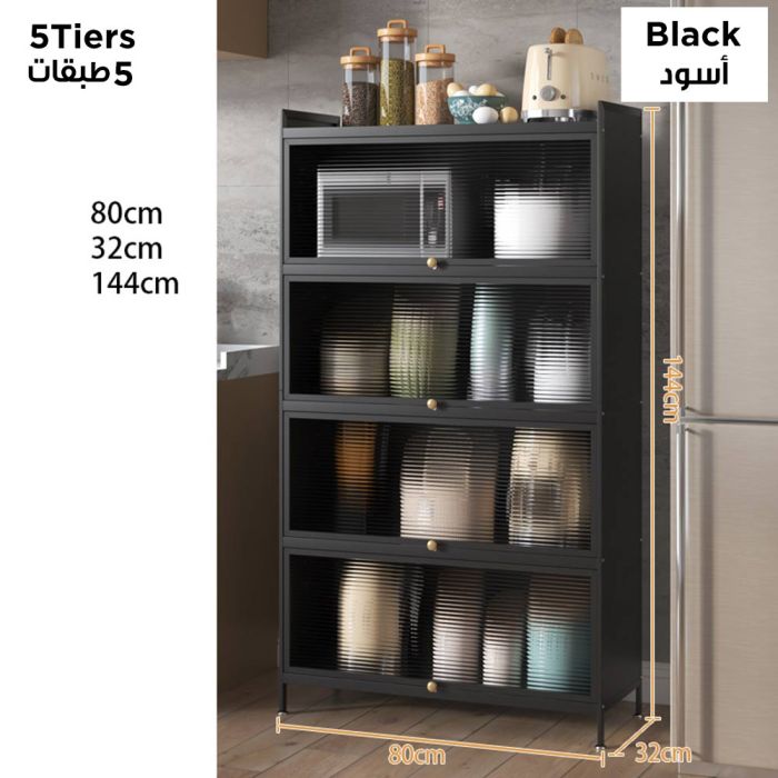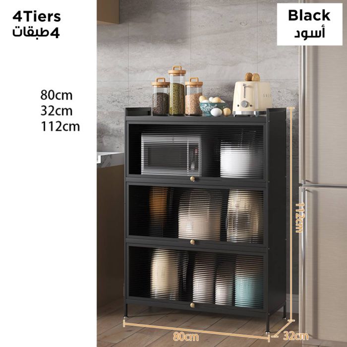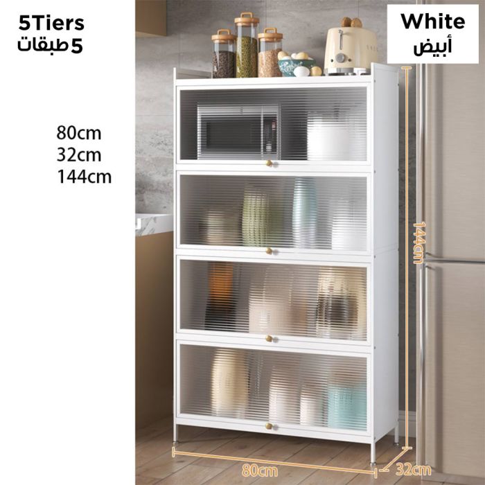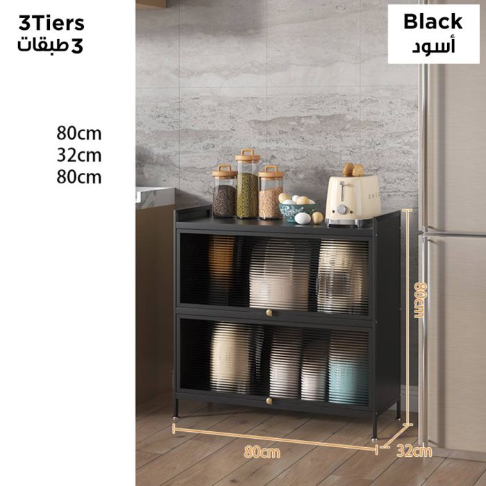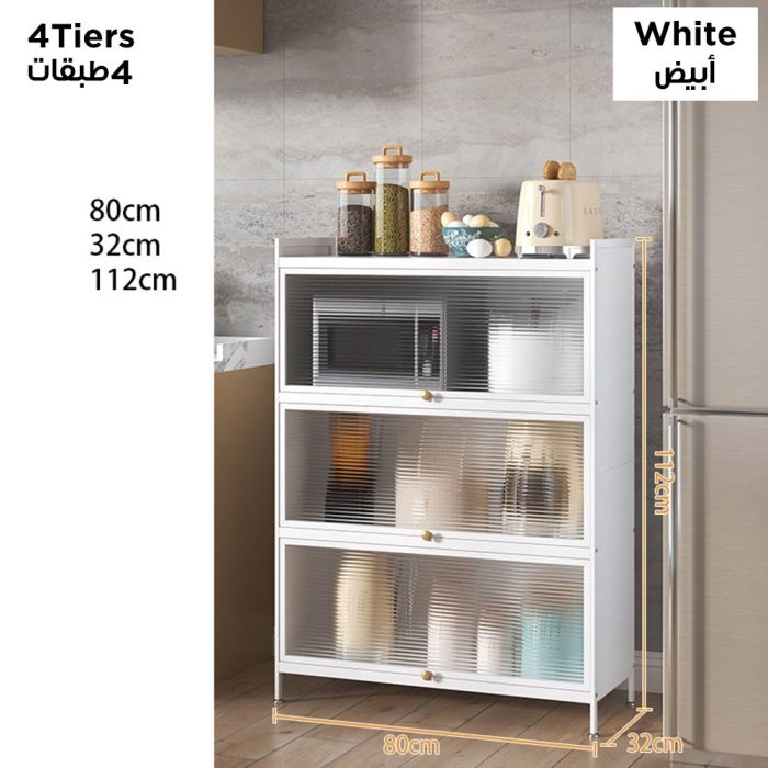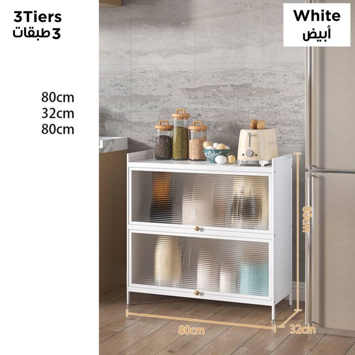 منظم معدني متعدد الطبقات مع أبواب أكريليك بتصميم عملي يوفر ترتيبًا واضحًا وحماية من الغبار، هيكل معدني ثابت يدعم الاستخدام اليومي، وأبواب شفافة تسهّل رؤية المحتويات، مناسب للمطبخ والمساحات التي تحتاج تنظيم أنيق ومرن