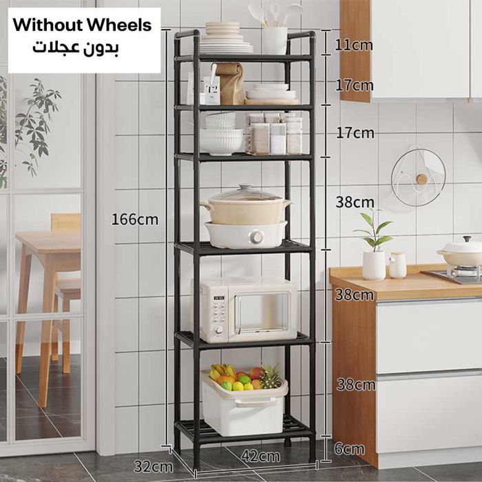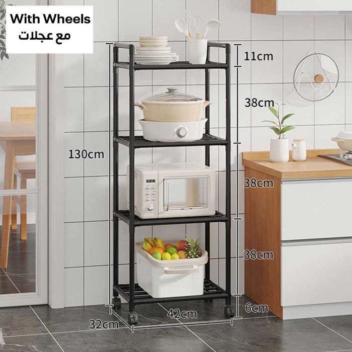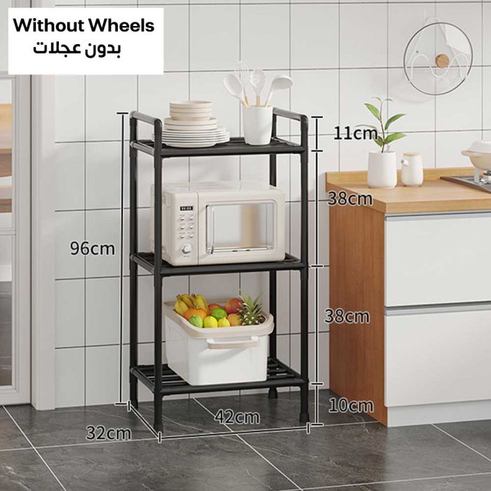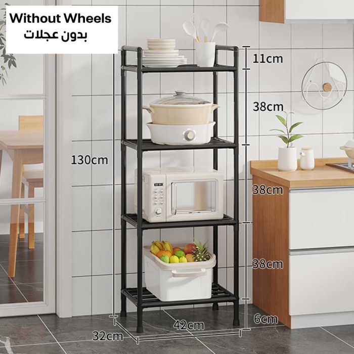 منظم معدني متعدد الطبقات مع أو بدون عجلات مصنوع من هيكل معدني متين، تصميم عملي يوفر ترتيبًا مرنًا للأجهزة والأدوات، يدعم الاستخدام اليومي بسهولة، مناسب للمطبخ والمساحات التي تحتاج تنظيم ذكي ومتغير