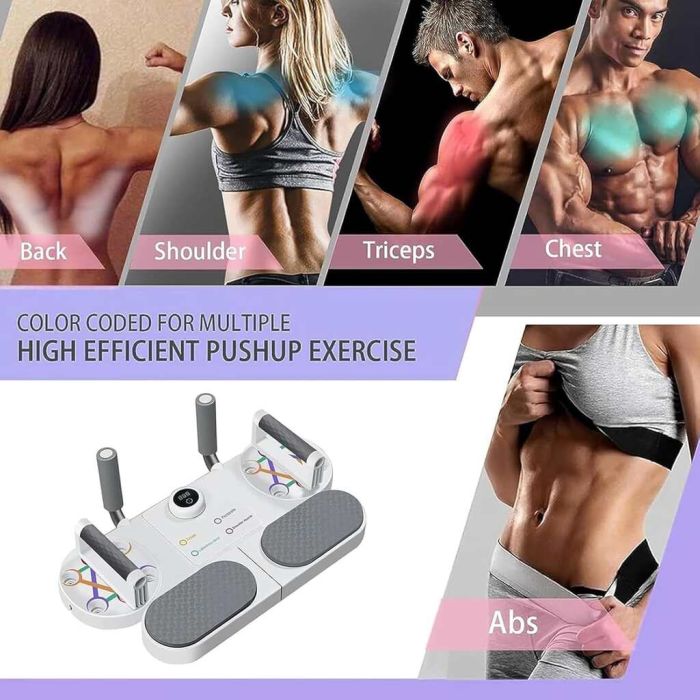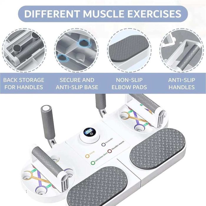 - يدعم تمارين الجسم بالكامل: الصدر، الذراعين، عضلات البطن، الظهر، الكتفين
