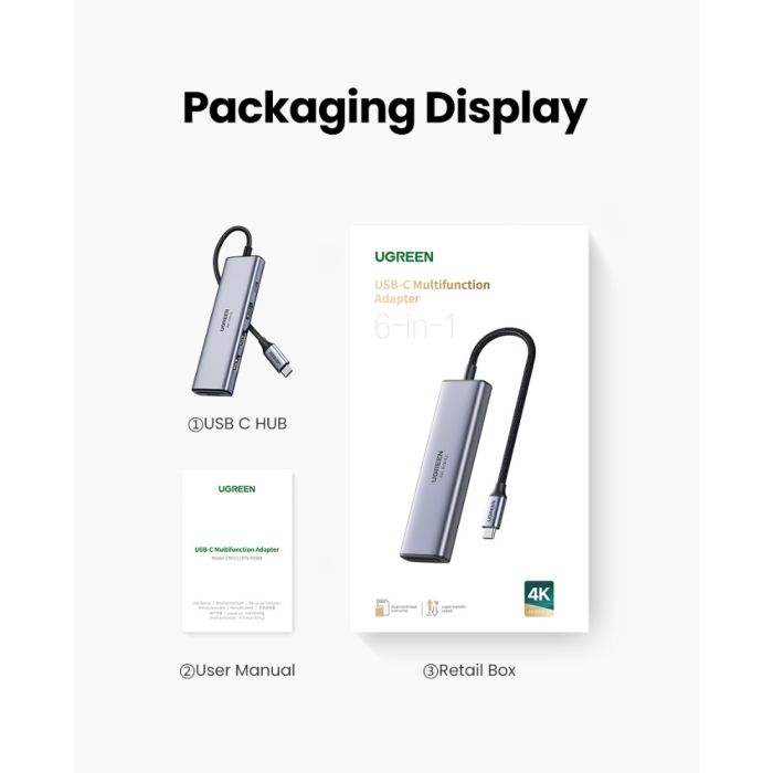 - محول USB متعدد الوظائف 6 في 1 بمنفذ Type-C من Ugreen