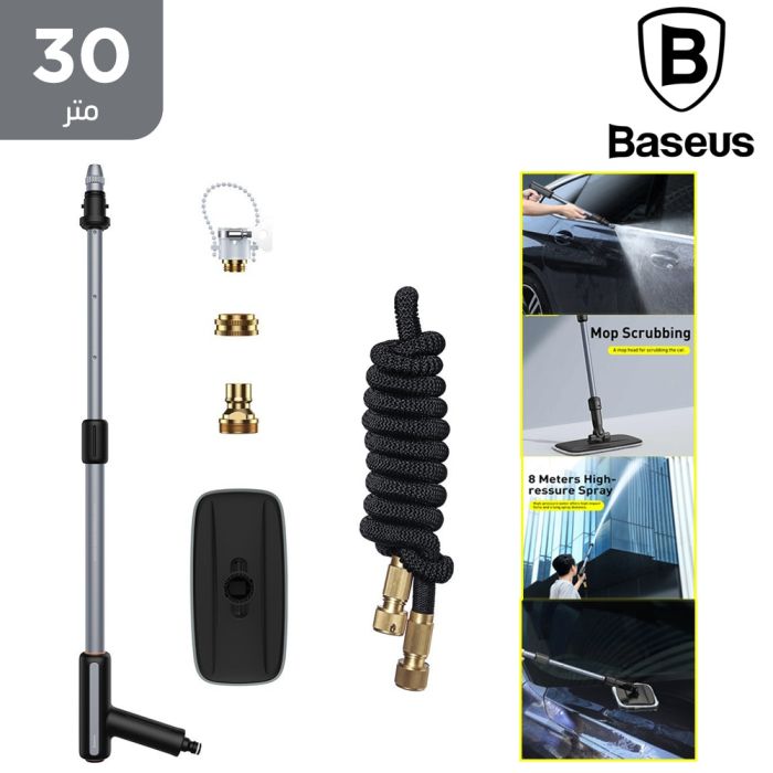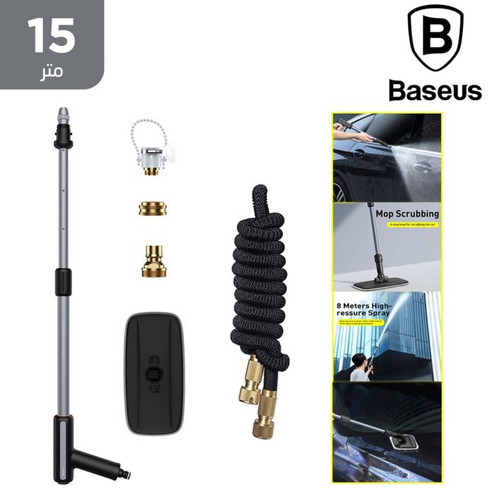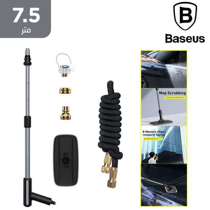 هوز مياه متعدد الوظائف والاستخدامات من Baseus، يتميز بفوهة رش قوية. يمكنك استخدامها لغسيل وتنظيف السيارة، الدراجة أو حتى لري حديقة منزلك