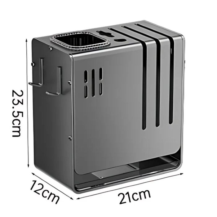منظم المطبخ هذا هو الحل الأمثل لتنظيم وترتيب أدوات المطبخ، حيث يجمع بين التصميم العملي والمرونة في الاستخدام. يتميز بهيكل مقسم بذكاء ليناسب جميع أدواتك - من السكاكين والملاعق إلى لوح التقطيع - كما يوفر خياراً مزدوجاً للتركيب: إما وضعه على سطح الطاولة أو تعليقه على الحائط دون حفر، مع ضمان قدرة تحمل قوية وثبات عالي.
