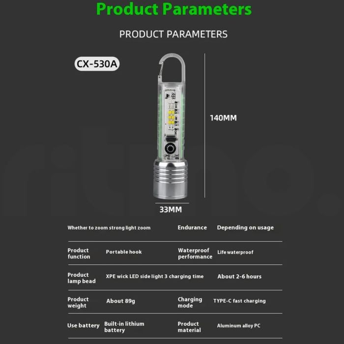 احصل على إضاءة قوية ومتعددة الاستخدامات. تصميم مدمج وخفيف ليناسب كل موقف، من المغامرات الخارجية إلى إصلاحات السيارات في حالات الطوارئ. يضم شعاعًا رئيسيًا قويًا ولوحة إضاءة جانبية توفر مجموعة واسعة من خيارات الإضاءة، بما في ذلك الأبيض، الأحمر، الأزرق، وضوء UV. بفضل وظيفة الزوم، يمكنك التبديل بسهولة بين ضوء كاشف مركز وضوء غامر واسع. كما أن البطارية المدمجة القابلة لإعادة الشحن والجسم المتين الذي يضيء في الظلام يجعلانه المصباح المثالي للاستخدام في المنزل أو السيارة أو أثناء التنقل.