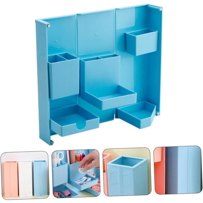 رتب مكتبك بطريقة أذكى مع منظم مصمم ليجمع الأدوات اليومية في مكان واحد بشكل مرتب وسهل الوصول. يأتي هذا الحامل متعدد الاستخدامات بتصميم قابل للطي مع عدة خانات عملية، ليمنحك مساحة مناسبة لترتيب الأقلام والألوان والمقصات والملاحظات اللاصقة وبطاقات الاسم وأدوات التجميل والريموت كنترول وغير ذلك من القطع الصغيرة. كما يضيف شكله المستطيل ولمسته متعددة الألوان مظهراً أكثر حيوية وترتيباً إلى المكتب أو ركن الدراسة أو المساحة المنزلية.