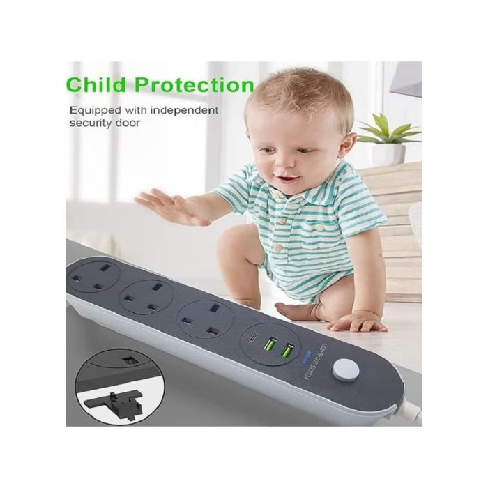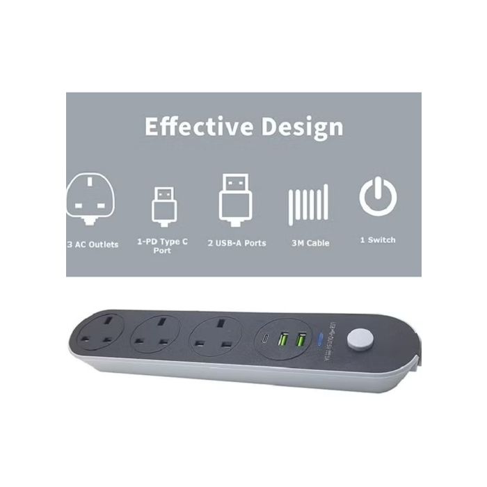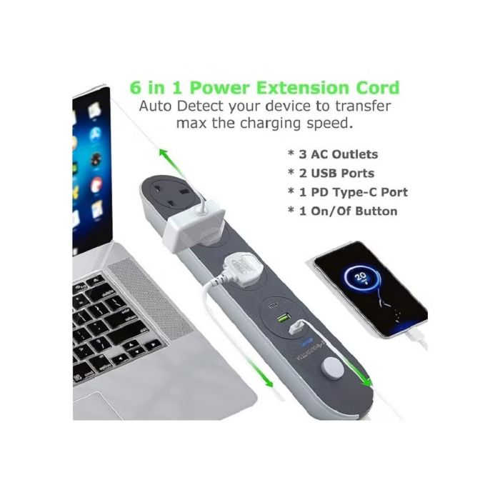 - مقبس طاقة متعدد الوظائف 2 منفذ USB و1 منفذ TYPE-C