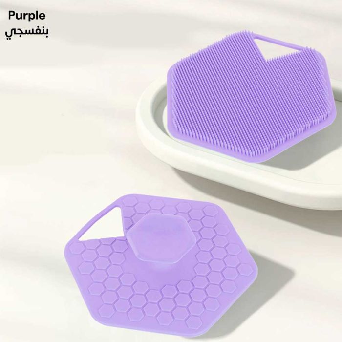 - تصميم مزدوج الجهتين: جهة للتنظيف اللطيف وجهة للتقشير والتدليك.