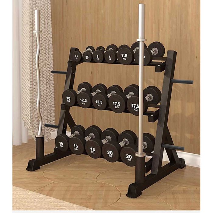 - تصميم متعدد الاستخدام لتخزين الدمبلز والأوزان والعصيان الرياضية
