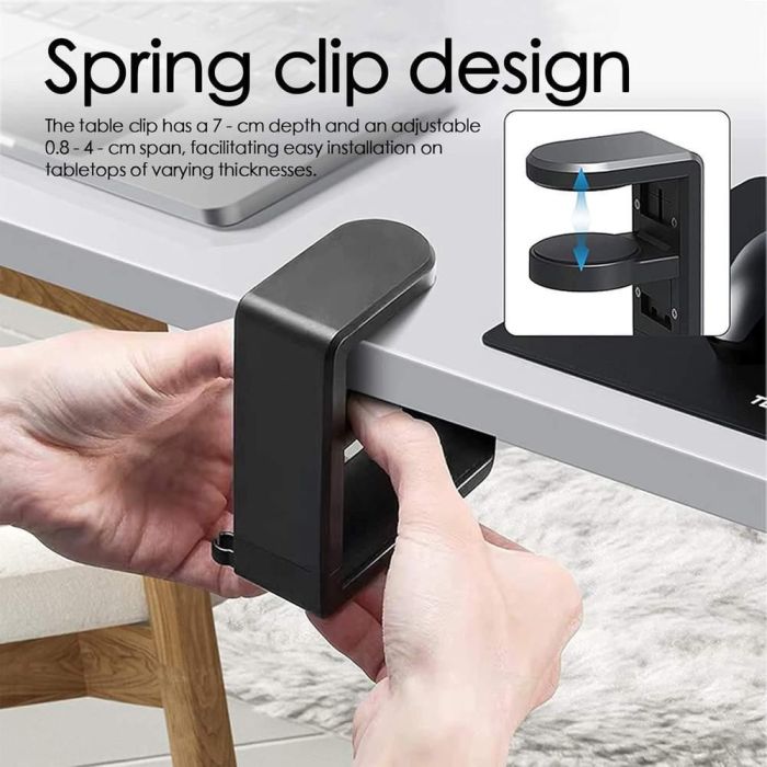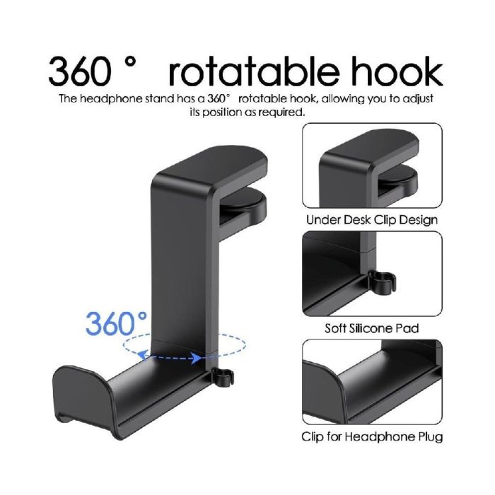 استغل مساحة مكتبك بذكاء مع ستاند السماعات المبتكر، يوفر مكاناً آمناً ومنظماً لسماعات الرأس بعيداً عن الفوضى. بفضل الدوران الكامل، يمكن سحب السماعة للخارج أو إخفاؤها أسفل المكتب بسهولة، بينما يضمن المشبك القوي ثباتاً ممتازاً وحماية لسطح الطاولة