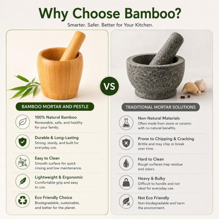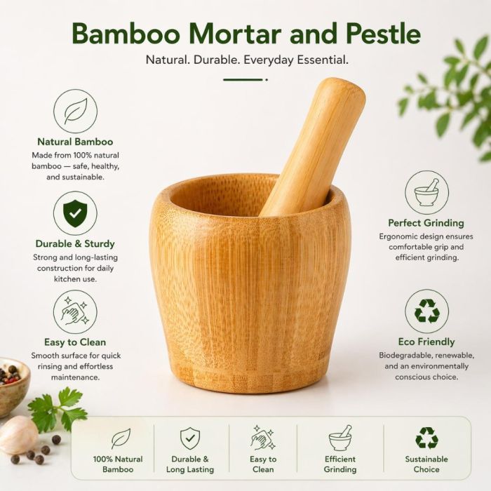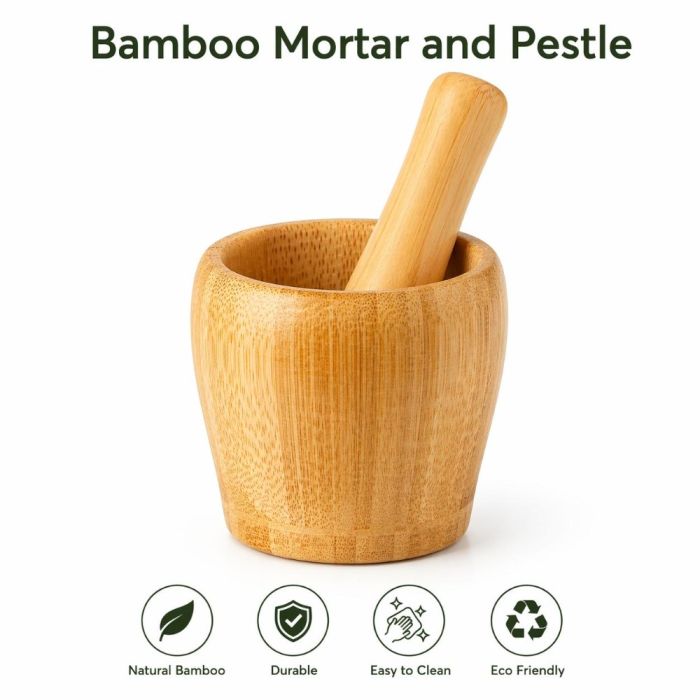 - هاون ومدقة خيزران طبيعي للمطبخ