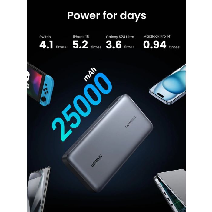 بطارية Nexode الاحتياطية شحن سريع PD سعة 25000 مللي أمبير قوة 145 واط من UGREEN