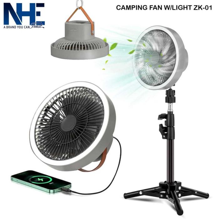 - مروحة محمولة 3 في 1 مع إضاءة LED وبطارية احتياطية سعة 10000 مللي أمبير من NHE